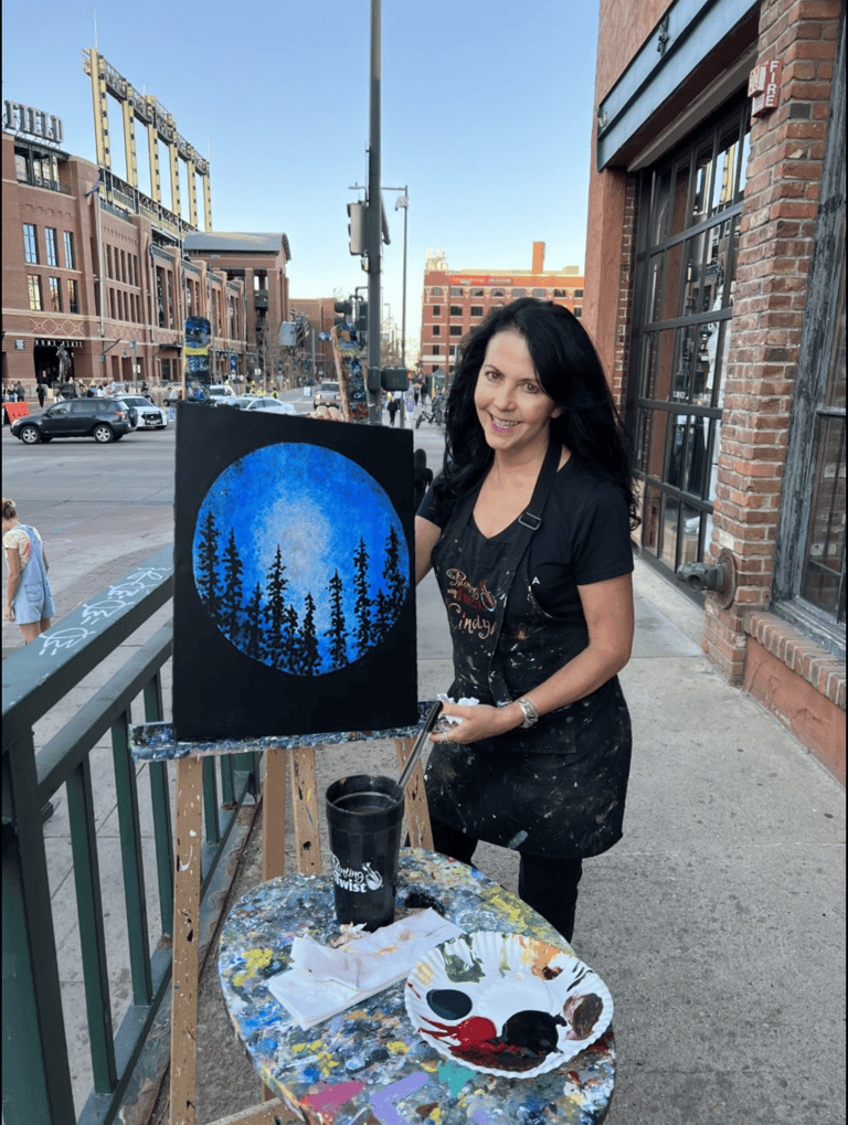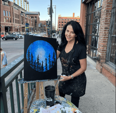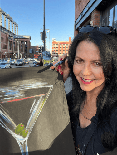 For 20 years I was an art teacher in the public school system Since that time I have taught private art lessons and for the last several years have taught Paint and Sip classes in Denver and surrounding areas. Because of my experience and expertise as an artist, I was asked to be a contributing artist and have designed many of the paintings used by the company. I love to create art and inspire others to find their creative selves in a fun and accepting environment. That is the motivation for the group painting experiences I lead in my Paint and Sip classes.